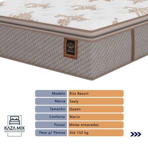 Combinando tecnologia de ponta, materiais de alta qualidade e proteções integradas, o Colchão Ritz Resort Sealy surge como a escolha perfeita para quem busca uma boa noite de sono e uma experiência de descanso luxuosa e rejuvenescedora.