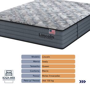 Bem-vindo(a) ao nosso catálogo! Apresentamos a você uma descrição completa sobre esse produto: A marca SealyEntre as personalidades que usam e usaram os colchões da marca Sealy estão a cantora Adele, Rainha Elizabeth II, a apresentadora Ellen DeGeneres e o jogador de basquete LeBron James. Atendendo também os hotéis da Disney, Copacabana Palace, Hard Rock Hotels e outros. Referência na fabricação de colchões de alta qualidade, a empresa foi fundada em 1881. Investindo em tecnologia de ponta e materiais premium para produzir produtos duráveis e confortáveis, é reconhecida por diversos consumidores famosos em todo o mundo. Modelo: LincolnNível de Conforto: MacioSuporte de peso: 300 quilos (150kg por pessoa)Molas: Molas Ensacadas DSS Espuma: Espuma Hipersoft GelAltura: 33 cm Tecido: Malha Margan 365 gO Colchão Lincoln Sealy é o ápice do conforto e sofisticação, criado para quem busca o melhor em qualidade de sono. Este colchão de 33 cm de altura é uma verdadeira obra-prima, combinando a renomada tecnologia de Molas Ensacadas DSS com o suporte adicional da tecnologia Posturepedic. Essa combinação oferece um alinhamento perfeito da coluna e alívio dos pontos de pressão, proporcionando uma experiência de sono revitalizante e tranquila. Com uma camada de espuma Hipersoft Gel, o Colchão Lincoln Sealy eleva o conforto a um novo patamar, garantindo uma sensação de maciez e ajudando a dissipar o calor, mantendo a temperatura ideal durante toda a noite. O tampo em Malha Margan, com 365 g/m², adiciona um toque de frescor e elegância, enquanto a lateral em Jacquard Plano reforça a durabilidade e o visual sofisticado. Além disso, o colchão é equipado com uma camada adicional de fibra siliconada e espuma Soft, com um reforço estratégico no terço central, garantindo suporte extra e conforto incomparável. As bordas firmes ampliam a área útil do colchão, evitando deformações e garantindo que cada centímetro seja aproveitado ao máximo. Com capacidade de suporte de até 150 kg por pessoa, o Colchão Lincoln Sealy não é apenas sinônimo de conforto, mas também de durabilidade e resistência. Eleve sua experiência de sono com este colchão, que combina tecnologia avançada, materiais de alta qualidade e um design elegante, transformando suas noites em momentos de descanso verdadeiramente restauradores. Além de tudo, esse produto acompanha a Cama Box da Kaza Mix e assim se torna um conjunto perfeito para o seu quarto! Marca: Kaza MixCor do Box: BrancoTamanho: QueenMaterial dos pés: MadeiraEstrutura: MadeiraPeso máximo recomendado: Até 150kg de cada ladoLargura: 158cmComprimento: 198cmAltura dos pés: 12cmAltura total: 42cmGarantia: 03 mesesSelo Ecologicamente CorretoAtenção: - Antes de finalizar sua compra, recomendamos que verifique se as dimensões do produto são adequadas para serem transportadas pelos elevadores, portas, escadas e corredores de sua residência. Ressaltamos que não nos responsabilizamos pelo transporte do produto por meios específicos, como escadas, guinchos ou içamentos. - É possível que hajam leves variações de cor de acordo com o dispositivo que está sendo utilizado como smartphones, computadores, monitores e outros.