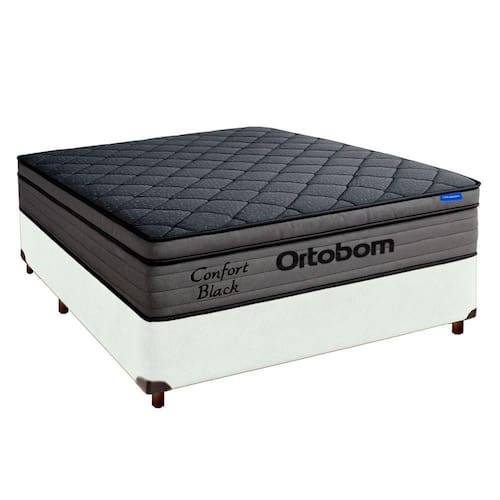 Cama Box Branco+colchão Casal Confort Black Espuma Ortobom Conjunto Casal Colchão Confort Black + Cama Box Branco O Colchão Confort Black Ortobom une tecnologia e conforto para um sono de qualidade. Conta com pillow top em espuma D28 selada, que garante maciez, resiliência e durabilidade. Sua estrutura interna em EPS de alta resistência oferece suporte firme e estável, mantendo a ergonomia ideal.