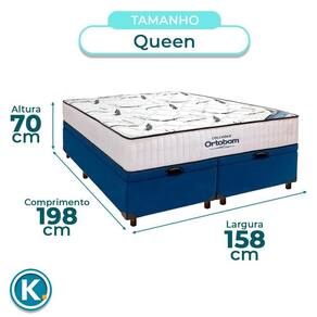 Modelo: Freedom Marca: Ortobom Tamanho: Queen Tecido: Poliéster Largura: 158cm Comprimento: 198cm Altura: 32cm Suporte de Peso: 150Kg Garantia: 12 Meses Tecnologia No Turn (não necessita ser virado)