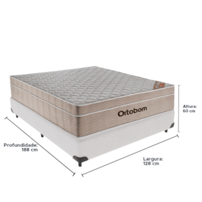 O conforto que sua casa precisa e a qualidade que você merece está na Kazamix!Durma com a Qualidade e Conforto que Você Merece!O Colchão Airtech SpringMolas Ensacadas Ortobom é a escolha perfeita para quem busca conforto e suporte. Equipado com um sistema de molas ensacadas, ele oferece suporte individualizado, garantindo o alinhamento correto da coluna e reduzindo os impactos dos movimentos durante o sono. O Euro Pillow proporciona uma camada extra de maciez, garantindo um sono ainda mais revigorante.Seu revestimento em tecido de malha e matelassê, junto com a lateral em suede, proporcionam um visual sofisticado, elevando ainda mais a estética do seu dormitório e agregando elegância ao ambiente.Além disso, o colchão conta com proteção antiácaro e antialérgico, criando um ambiente de sono mais saudável e ideal para quem busca bem-estar. Produzido com materiais de alta qualidade e a confiabilidade da Ortobom, líder em tecnologia e durabilidade, ele é feito para durar, oferecendo anos de conforto e suporte.Modelo: Airtech SpringMolas EnsacadasMarca: OrtobomTamanho: ViúvoDimensões: 128x188X25 (Largura x Comprimento x Altura)Conforto: MacioSistema: Molas EnsacadasPillow: Euro PillowPeso Máximo recomendado: 120 kg (Por pessoa)Proteções: Antiácaro, antialérgico, antifungo, antimofoGarantia: 1 ano pelo FabricanteO conforto que sua casa precisa e a qualidade que você merece está na Kazamix!Eleve o conforto e a sofisticação do seu quarto com a Cama Box!Produzida em madeira de reflorestamento reforçada, a Cama Box combina qualidade, durabilidade e um design elegante, que confere leveza e modernidade ao seu dormitório. Sua estrutura robusta suporta até 150 kg por pessoa, garantindo a sustentação perfeita para o colchão e prolongando a vida útil do produto.Com uma altura ergonômica, ela oferece maior conforto ao deitar e levantar, enquanto o acabamento de alta qualidade se adapta a qualquer estilo de decoração, unindo praticidade e estilo.Não perca tempo! Adquira agora mesmo a sua Cama Box e transforme seu dormitório com conforto e elegância.Marca: KazaMixModelo: BoxCor do Box: BrancoTamanho: ViúvoDimensões: 128X188X35 (Largura x Comprimento x Altura) Estrutura: MadeiraPeso máximo recomendado: 150 kg (Por Pessoa)Altura do Box: 25 cm Altura dos Pés: 10 cm Altura total: 35 cm Garantia: 03 mesesSelo Ecologicamente CorretoAtenção: Antes de finalizar sua compra, certifique-se de que as dimensões do produto sejam adequadas para serem transportadas pelos elevadores, portas, escadas e corredores de sua residência. Ressaltamos que não nos responsabilizamos pelo transporte do produto por meios específicos, como escadas, guinchos ou içamentos.