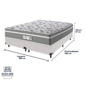 O conforto que sua casa precisa e a qualidade que você merece está na Kazamix!O Colchão Evolution é a escolha ideal para quem busca conforto, suporte e qualidade em cada noite de sono. Com Molas Ensacadas que oferecem um suporte individualizado, e um Pillow Euro que proporciona uma camada extra de suavidade, esse colchão transforma seu descanso em uma experiência de luxo.Com espuma D28 de alta densidade, o Evolution garante firmeza e conforto duradouros. Seu acabamento em poliéster diamante e bordado em matelassê trazem um toque de elegância e sofisticação ao seu ambiente.Além disso, o colchão é tratado com propriedades antiácaro e antialérgico, garantindo um sono mais saudável e seguro.Invista no seu bem-estar com o colchão Evolution, e experimente a combinação perfeita de conforto e durabilidade!Modelo: EvolutionMarca: ProbelTamanho: QueenDimensões: 158x198X32 (Largura x Comprimento x Altura)Conforto: IntermediárioSistema: Molas EnsacadasPillow: Euro PillowPeso Máximo recomendado: 110 kg (Por pessoa)Proteções: Antiácaro, antialérgico, antifungo, antimofoGarantia: 1 ano pelo FabricanteO conforto que sua casa precisa e a qualidade que você merece está na Kazamix!Eleve o conforto e a sofisticação do seu quarto com a Cama Box!Produzida em madeira de reflorestamento reforçada, a Cama Box combina qualidade, durabilidade e um design elegante, que confere leveza e modernidade ao seu dormitório. Sua estrutura robusta suporta até 150 kg por pessoa, garantindo a sustentação perfeita para o colchão e prolongando a vida útil do produto.Com uma altura ergonômica, ela oferece maior conforto ao deitar e levantar, enquanto o acabamento de alta qualidade se adapta a qualquer estilo de decoração, unindo praticidade e estilo.Não perca tempo! Adquira agora mesmo a sua Cama Box e transforme seu dormitório com conforto e elegância.Marca: KazaMixModelo: BoxCor do Box: BrancoTamanho: QueenDimensões: 158X198X35 (Largura x Comprimento x Altura) Estrutura: MadeiraPeso máximo recomendado: 150 kg (Por Pessoa)Altura do Box: 25 cm Altura dos Pés: 10 cm Altura total: 35 cm Garantia: 03 mesesSelo Ecologicamente CorretoAtenção: Antes de finalizar sua compra, certifique-se de que as dimensões do produto sejam adequadas para serem transportadas pelos elevadores, portas, escadas e corredores de sua residência. Ressaltamos que não nos responsabilizamos pelo transporte do produto por meios específicos, como escadas, guinchos ou içamentos.