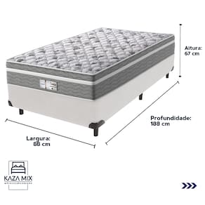 O conforto que sua casa precisa e a qualidade que você merece está na Kazamix!O Colchão Evolution é a escolha ideal para quem busca conforto, suporte e qualidade em cada noite de sono. Com Molas Ensacadas que oferecem um suporte individualizado, e um Pillow Euro que proporciona uma camada extra de suavidade, esse colchão transforma seu descanso em uma experiência de luxo.Com espuma D28 de alta densidade, o Evolution garante firmeza e conforto duradouros. Seu acabamento em poliéster diamante e bordado em matelassê trazem um toque de elegância e sofisticação ao seu ambiente.Além disso, o colchão é tratado com propriedades antiácaro e antialérgico, garantindo um sono mais saudável e seguro.Invista no seu bem-estar com o colchão Evolution, e experimente a combinação perfeita de conforto e durabilidade!Modelo: EvolutionMarca: ProbelTamanho: SolteiroDimensões: 88x188X32 (Largura x Comprimento x Altura)Conforto: IntermediárioSistema: Molas EnsacadasPillow: Euro PillowPeso Máximo recomendado: 110 kg (Por pessoa)Proteções: Antiácaro, antialérgico, antifungo, antimofoGarantia: 1 ano pelo FabricanteO conforto que sua casa precisa e a qualidade que você merece está na Kazamix!Eleve o conforto e a sofisticação do seu quarto com a Cama Box!Produzida em madeira de reflorestamento reforçada, a Cama Box combina qualidade, durabilidade e um design elegante, que confere leveza e modernidade ao seu dormitório. Sua estrutura robusta suporta até 150 kg por pessoa, garantindo a sustentação perfeita para o colchão e prolongando a vida útil do produto.Com uma altura ergonômica, ela oferece maior conforto ao deitar e levantar, enquanto o acabamento de alta qualidade se adapta a qualquer estilo de decoração, unindo praticidade e estilo.Não perca tempo! Adquira agora mesmo a sua Cama Box e transforme seu dormitório com conforto e elegância.Marca: KazaMixModelo: BoxCor do Box: BrancoTamanho: SolteiroDimensões: 88X188X35 (Largura x Comprimento x Altura) Estrutura: MadeiraPeso máximo recomendado: 150 kg (Por Pessoa)Altura do Box: 25 cm Altura dos Pés: 10 cm Altura total: 35 cm Garantia: 03 mesesSelo Ecologicamente CorretoAtenção: Antes de finalizar sua compra, certifique-se de que as dimensões do produto sejam adequadas para serem transportadas pelos elevadores, portas, escadas e corredores de sua residência. Ressaltamos que não nos responsabilizamos pelo transporte do produto por meios específicos, como escadas, guinchos ou içamentos.