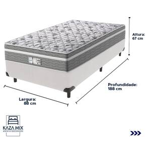 O conforto que sua casa precisa e a qualidade que você merece está na Kazamix!O Colchão Evolution é a escolha ideal para quem busca conforto, suporte e qualidade em cada noite de sono. Com Molas Ensacadas que oferecem um suporte individualizado, e um Pillow Euro que proporciona uma camada extra de suavidade, esse colchão transforma seu descanso em uma experiência de luxo.Com espuma D28 de alta densidade, o Evolution garante firmeza e conforto duradouros. Seu acabamento em poliéster diamante e bordado em matelassê trazem um toque de elegância e sofisticação ao seu ambiente.Além disso, o colchão é tratado com propriedades antiácaro e antialérgico, garantindo um sono mais saudável e seguro.Invista no seu bem-estar com o colchão Evolution, e experimente a combinação perfeita de conforto e durabilidade!Modelo: EvolutionMarca: ProbelTamanho: SolteiroDimensões: 88x188X32 (Largura x Comprimento x Altura)Conforto: IntermediárioSistema: Molas EnsacadasPillow: Euro PillowPeso Máximo recomendado: 110 kg (Por pessoa)Proteções: Antiácaro, antialérgico, antifungo, antimofoGarantia: 1 ano pelo FabricanteO conforto que sua casa precisa e a qualidade que você merece está na Kazamix!Eleve o conforto e a sofisticação do seu quarto com a Cama Box!Produzida em madeira de reflorestamento reforçada, a Cama Box combina qualidade, durabilidade e um design elegante, que confere leveza e modernidade ao seu dormitório. Sua estrutura robusta suporta até 150 kg por pessoa, garantindo a sustentação perfeita para o colchão e prolongando a vida útil do produto.Com uma altura ergonômica, ela oferece maior conforto ao deitar e levantar, enquanto o acabamento de alta qualidade se adapta a qualquer estilo de decoração, unindo praticidade e estilo.Não perca tempo! Adquira agora mesmo a sua Cama Box e transforme seu dormitório com conforto e elegância.Marca: KazaMixModelo: BoxCor do Box: BrancoTamanho: SolteiroDimensões: 88X188X35 (Largura x Comprimento x Altura) Estrutura: MadeiraPeso máximo recomendado: 150 kg (Por Pessoa)Altura do Box: 25 cm Altura dos Pés: 10 cm Altura total: 35 cm Garantia: 03 mesesSelo Ecologicamente CorretoAtenção: Antes de finalizar sua compra, certifique-se de que as dimensões do produto sejam adequadas para serem transportadas pelos elevadores, portas, escadas e corredores de sua residência. Ressaltamos que não nos responsabilizamos pelo transporte do produto por meios específicos, como escadas, guinchos ou içamentos.
