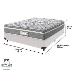 O conforto que sua casa precisa e a qualidade que você merece está na Kazamix!O Colchão Evolution é a escolha ideal para quem busca conforto, suporte e qualidade em cada noite de sono. Com Molas Ensacadas que oferecem um suporte individualizado, e um Pillow Euro que proporciona uma camada extra de suavidade, esse colchão transforma seu descanso em uma experiência de luxo.Com espuma D28 de alta densidade, o Evolution garante firmeza e conforto duradouros. Seu acabamento em poliéster diamante e bordado em matelassê trazem um toque de elegância e sofisticação ao seu ambiente.Além disso, o colchão é tratado com propriedades antiácaro e antialérgico, garantindo um sono mais saudável e seguro.Invista no seu bem-estar com o colchão Evolution, e experimente a combinação perfeita de conforto e durabilidade!Modelo: EvolutionMarca: ProbelTamanho: ViúvoDimensões: 128x188X18 (Largura x Comprimento x Altura)Conforto: IntermediárioSistema: Molas EnsacadasPillow: Euro PillowPeso Máximo recomendado: 110 kg (Por pessoa)Proteções: Antiácaro, antialérgico, antifungo, antimofoGarantia: 1 ano pelo FabricanteO conforto que sua casa precisa e a qualidade que você merece está na Kazamix!Eleve o conforto e a sofisticação do seu quarto com a Cama Box!Produzida em madeira de reflorestamento reforçada, a Cama Box combina qualidade, durabilidade e um design elegante, que confere leveza e modernidade ao seu dormitório. Sua estrutura robusta suporta até 150 kg por pessoa, garantindo a sustentação perfeita para o colchão e prolongando a vida útil do produto.Com uma altura ergonômica, ela oferece maior conforto ao deitar e levantar, enquanto o acabamento de alta qualidade se adapta a qualquer estilo de decoração, unindo praticidade e estilo.Não perca tempo! Adquira agora mesmo a sua Cama Box e transforme seu dormitório com conforto e elegância.Marca: KazaMixModelo: BoxCor do Box: BrancoTamanho: ViúvoDimensões: 128X188X35 (Largura x Comprimento x Altura) Estrutura: MadeiraPeso máximo recomendado: 150 kg (Por Pessoa)Altura do Box: 25 cm Altura dos Pés: 10 cm Altura total: 35 cm Garantia: 03 mesesSelo Ecologicamente CorretoAtenção: Antes de finalizar sua compra, certifique-se de que as dimensões do produto sejam adequadas para serem transportadas pelos elevadores, portas, escadas e corredores de sua residência. Ressaltamos que não nos responsabilizamos pelo transporte do produto por meios específicos, como escadas, guinchos ou içamentos.