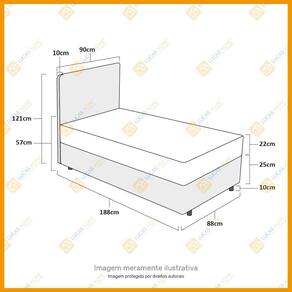 Especificações Técnicas Base Box: - Marca: Lucas Home; - Material: Madeira tratada; - Peso máximo recomendado: até 150Kg (por pessoa); - Altura da base: 25cm; - Altura dos pés: 10cm; - Revestimento: Corino; - Garantia: 06 meses na estrutura; - Dimensões do produto (largura x comprimento x altura) Solteiro: 88x188x35cm.