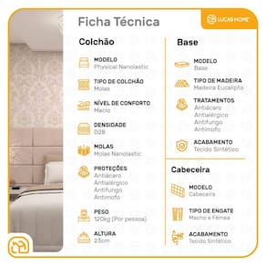 Complementando este colchão, a base box é feita de madeira tratada e revestida, suportando até 150 Kg por pessoa. Ela não só eleva seu colchão a uma altura ideal para fácil acesso, mas também estabiliza seu sono com uma fundação sólida e confiável. Esta combinação não apenas maximiza seu conforto, mas também a funcionalidade do seu espaço de descanso.