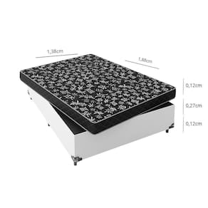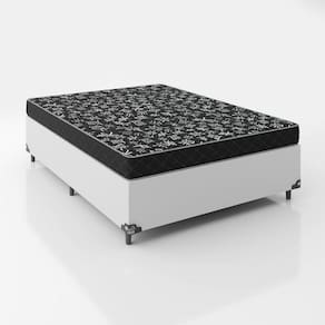 Base Box Casal Tecido Sintético Branco   Colchão Espuma  D20 - Tampo Preto 12cm. INFORMAÇÕES COLCHÃO: 1. Tecido de revestimento: Poliéster Bordado;2. Cor: Preto;3. Modelo: Casal Simples;4. Tamanho: 0,12 x 1,38 x 1,88 m;5. Peso limite: 90 kg por pessoa;6. Peso do produto: 4 kg;7. Material de estrutura: Espuma D20; 8. Tipo de conforto: Firme. INFORMAÇÕES BOX BÁU: 1. Tecido de revestimento: tecido sintético;2. Cor: Branco;3. Modelo: Casal 1,38 m;Tamanhos: * COM pés: 0,40 m x 1,38 m x 1,88 m * SEM pés: 0,28 m x 1,38 m x 1,88 m; 4. Peso limite: 100 kg por pessoa;5. Peso do produto: 25 kg;6. Material de estrutura: Madeira de Pinus;7. É chapeado nas laterais: Não; 8. Necessita montagem: Não, somente encaixe dos pés;9. Acompanha colchão: Sim. Importante:-As imagens ambientadas são meramente ilustrativas e podem apresentar itens que não compõe o produto.- As cores do produto podem variar de acordo com o monitor, a iluminação do ambiente ou sua percepção visual.- Não nos responsabilizamos em subir pelas escadas ou içar o produto.- Montagens, desmontagens e instalações são responsabilidades do cliente. Estes serviços não estão inclusos no valor do produto. Para evitar imprevistos na sua entrega, confira as dimensões do produto no momento da compra e certifique-se de que ele passará por elevadores, portas, escadas e corredores.