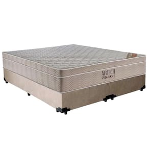 Cama Box Casal Sintético Bipartido Bege + Colchão Ortobom Airtech Molas Ensacadas 65x138x188