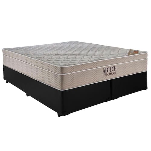 Cama Box Casal Bipartido Sintético + Colchão Ortobom Airtech Molas Ensacadas 65x138x188 Preto