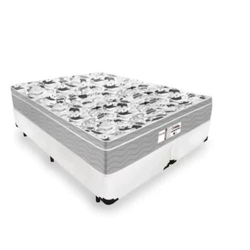 Cama Box Casal Bipartido Tecido Sintético Branco com Colchão De Molas Ensacadas - Probel Evolution