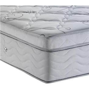 - Acabamento: Bordado em Matelassê;- Matéria prima: Espuma/Molas/Tecido;- Tipo de conforto: Macio;- Peso máximo recomendado: até 150kg (por pessoa);- Garantia: 12 meses na estrutura e 3 meses no tecido;