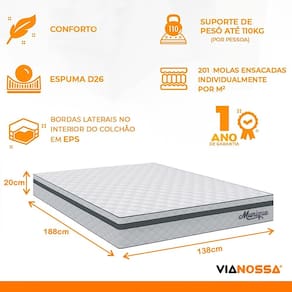 - Tamanho do Colchão: 138x188;