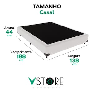 A tecnologia que a sua casa merece está na V-Store!A Base Box Bravus da V-Store une funcionalidade e elegância, sendo a escolha perfeita para quem busca praticidade e durabilidade. Feita com madeira reflorestada, ela oferece excelente sustentação para o seu colchão, enquanto seu revestimento em tecido sintético garante resistência e facilidade de manutenção. Seu design compacto e sofisticado complementa a decoração do quarto com estilo.Com capacidade para 150 kg por pessoa e Selo Ecologicamente Correto, a Base Box Bravus oferece resistência, sustentabilidade e versatilidade para o seu ambiente.Adquira já a sua Base Box Bravus V-Store e transforme seu dormitório com qualidade e estilo!CARACTERÍSTICAS DO PRODUTOMarca: V-StoreModelo: BravusCor do Box: BrancoTamanho: CasalDimensões: 138x44x188 (Largura x Altura x Comprimento)Estrutura: MadeiraPeso máximo recomendado: 150 kg (Por Pessoa)Altura do Box: 26 cmAltura dos Pés: 6 cmAltura total: 44 cmGarantia: 12 Meses (Estrutura) / 3 meses (Tecido)Selo Ecologicamente CorretoAtenção:- Antes de finalizar sua compra, recomendamos que verifique se as dimensões do produto são adequadas para serem transportadas pelos elevadores, portas, escadas e corredores de sua residência. Ressaltamos que não nos responsabilizamos pelo transporte do produto por meios específicos, como escadas, guinchos ou içamentos.- É possível que hajam leves variações de cor de acordo com o dispositivo que está sendo utilizado como smartphones, computadores, monitores e outros.