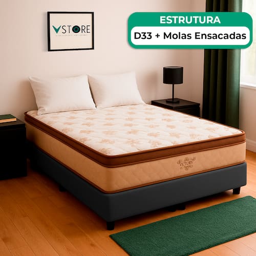A tecnologia que a sua casa merece está na V-Store! O Conjunto Colchão Four Seasons e Base Box Bravus oferece o equilíbrio perfeito entre conforto e funcionalidade. O colchão, com molas ensacadas, pillow top e EPS, garante excelente suporte e conforto térmico, ideal para casais. Já a base, feita de madeira reflorestada e revestida em tecido sintético, oferece durabilidade e praticidade, com amplo espaço para armazenamento.Característica Do Colchão: Modelo: Four SeasonMarca: V-StoreTamanho: CasalDimensões: 138x30x188 (Largura x Altura x Comprimento)Conforto: MédioSistema: Molas EnsacadasPillow: Pillow TopPeso Máximo recomendado: 150 kg (Por pessoa)Proteções: Antiácaro, antialérgico, antifungo, antimofoGarantia: 12 Meses (Espuma) / 10 anos ( Conjunto de Molas Ensacadas)Característica Da Base: Marca: V-StoreModelo: BravusCor do Box: CinzaTamanho: CasalDimensões: 138x44x188 (Largura x Altura x Comprimento)Estrutura: MadeiraPeso máximo recomendado: 150 kg (Por Pessoa)Altura do Box: 26 cmAltura dos Pés: 6 cmAltura total: 44 cmGarantia: 12 Meses (Estrutura) / 3 meses (Tecido)Selo Ecologicamente CorretoAtenção:- Antes de finalizar sua compra, recomendamos que verifique se as dimensões do produto são adequadas para serem transportadas pelos elevadores, portas, escadas e corredores de sua residência. Ressaltamos que não nos responsabilizamos pelo transporte do produto por meios específicos, como escadas, guinchos ou içamentos.- É possível que hajam leves variações de cor de acordo com o dispositivo que está sendo utilizado como smartphones, computadores, monitores e outros.