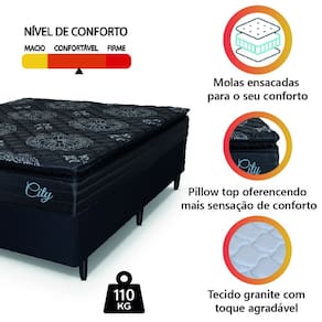 Poliéster (revestimento), Eucalipto e Pinus (estrutura do box), PVC (pés)Vendido e entregue por Esplanada Móveis