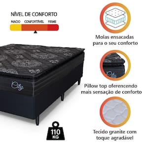 MODELO: Cama Box Casal Colchão Com Molas Ensacadas City Pillow Top 138x188x61cm Preto Hellen