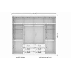 Dimensões(Cm): Comprimento(Profundidade): 239cm x Largura: 46cm x Altura: 218cm Tipo de Estrutura do Móvel - Estrutura 100% MDP Vantagens Extras dos Guarda Roupas - Desmontável - Cabideira Metálico - Maleiro - Divisão Ele/Ela Tipo de Corrediça - c/ Corrediças Metálicas Tipo de Pintura - Ultravioleta - Texturizada Tipo de Acabamento da Pintura - Semi Brilho Tamanho do Guarda-Roupa - Casal Quantidade de Portas - 8 Portas de Abrir Quantidade de Gavetas - 6 Gavetas Quantidade de Prateleiras - 10 Garantia - 3 meses