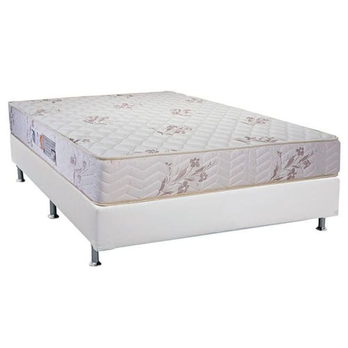 Conjunto Box Casal: Colchão Espuma Luckspuma D45 Gran Luck Floral Pró Saúde + Base CRC Courano White(138x188)