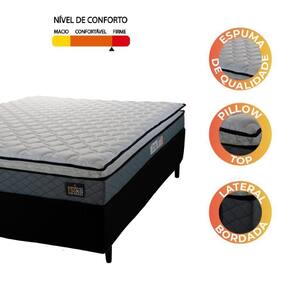 ; MEDIDAS: [ A ] = 62 cm / 50cm (sem pés) [ L ] = 138 cm [ P ] = 188 cm | MODELO:: Cama Box Casal Strong | MARCA: Hellen | COR:: Cinza/Preto | REVESTIMENTO TECIDO LATERAL COLCHÃO:: Tecido 100% Poliéster Cinza | PILLOW/EURO: Pillow Top Bordado | TECIDO BOX:: Suede veludo | PÉS:: 6 | REVESTIMENTO TECIDO SUPERIOR COLCHÃO:: Tecido 100% Granitê Branco + TNT | REVESTIMENTO INTERIOR COLCHÃO:: Espuma D45 aliada com EPS que faz com que o colchão suporte até 150kg por pessoa | ESPUMA:: D45 | ALTURA DOS PÉS:: 12cm | PESO:: 42,97kg | PESO SUPORTADO:: 150kg por pessoa | ITENS INCLUSOS:: 1 Colchão 1,38m e 1 box de 1,38m | GARANTIA COLCHÃO :: 12 meses pelo fabricante | GARANTIA BOX:: 3 meses pelo fabricante | OBS:: Montagem não inclusa! Entregamos até a porta de entrada da casa do cliente ou até a portaria do condomínio. Foto ilustrativa. A percepção das cores pode ser um pouco diferente da mostrada na foto do anúncio em função da luminosidade do ambiente. Cor: Cinza