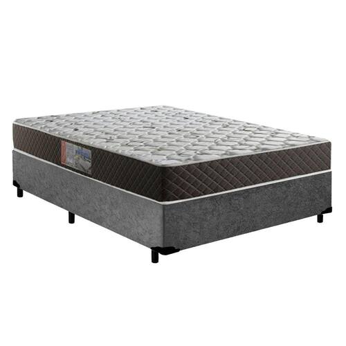 Cama Box Casal Colchão Mola Bonnel Belos Sonhos + Box Suede 60x138x188 - Cinza