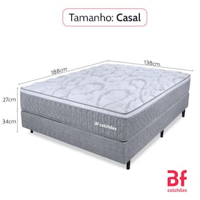 Características: - Molas ensacadas individualmente: Propicia que o movimento feito em um lado do colchão não seja sentido em outro, proporcionando individualidade entre os movimentos do casal. - Pillow top: Com camada de Espuma Viscoelástica também conhecida como espuma da nasa, ela irá absorver perfeitamente a pressão causada ao deitar-se, adaptando-se completamente a seu corpo e mantendo-o confortável durante o sono. - Espuma Max Flowing: Tecnologia em conforto exclusiva BF Colchões, sinta fluir todo aconchego da espuma Max Flowing. Conforto perfeito e um sono revigorante. - Suporte de Peso: Até 120 kg por pessoa. - Nível de Conforto: Intermediário - macio. - Tecido: Malha Malibu Ultra macia com bordado em matelasssê, o que oferece um toque mais macio com tratamento antimicrobiano (Anti-Ácaro / Anti-Alergico). - Revestimento: Tecido especial de Linho. Certificações: - Inmetro - Selo Inmetro: 002943/2017 OCP: 0095 - Pró - Espuma - INER - Instituto Nacional de Estudos do Repouso