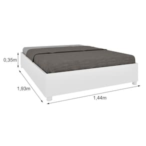 Estrutura Robusta: Produzida em MDP, com estrado de madeira reflorestada e ripas multilaminadas, garantindo firmeza superior e suportando até 200 kg.
