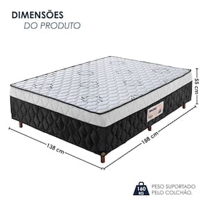 Cama Box Casal Espuma D-28 100% Poliéster 138x55cm Sonnus Branco / Preto Fosco