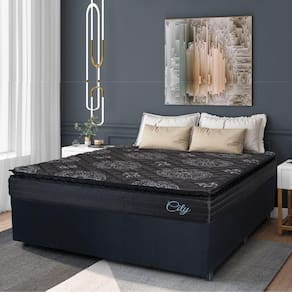 MODELO: Cama Box Casal King Colchão Com Molas Ensacadas City Pillow Top 193x203x61cm Preto Hellen