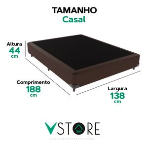 A tecnologia que a sua casa merece está na V-Store!A Base Box Bravus da V-Store une funcionalidade e elegância, sendo a escolha perfeita para quem busca praticidade e durabilidade. Feita com madeira reflorestada, ela oferece excelente sustentação para o seu colchão, enquanto seu revestimento em tecido sintético garante resistência e facilidade de manutenção. Seu design compacto e sofisticado complementa a decoração do quarto com estilo.Com capacidade para 150 kg por pessoa e Selo Ecologicamente Correto, a Base Box Bravus oferece resistência, sustentabilidade e versatilidade para o seu ambiente.Adquira já a sua Base Box Bravus V-Store e transforme seu dormitório com qualidade e estilo!CARACTERÍSTICAS DO PRODUTOMarca: V-StoreModelo: BravusCor do Box: MarromTamanho: CasalDimensões: 138x44x188 (Largura x Altura x Comprimento)Estrutura: MadeiraPeso máximo recomendado: 150 kg (Por Pessoa)Altura do Box: 26 cmAltura dos Pés: 6 cmAltura total: 44 cmGarantia: 12 Meses (Estrutura) / 3 meses (Tecido)Selo Ecologicamente CorretoAtenção:- Antes de finalizar sua compra, recomendamos que verifique se as dimensões do produto são adequadas para serem transportadas pelos elevadores, portas, escadas e corredores de sua residência. Ressaltamos que não nos responsabilizamos pelo transporte do produto por meios específicos, como escadas, guinchos ou içamentos.- É possível que hajam leves variações de cor de acordo com o dispositivo que está sendo utilizado como smartphones, computadores, monitores e outros.