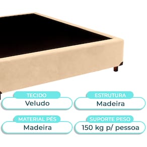 Base Box Casal Universal em Veludo – Sofisticação e Resistência para o Seu ConfortoRevestimento em veludo, com visual elegante e toque macioEstrutura robusta com suporte de até 150kg, ideal para colchões de casalMedidas padrão: 138x188cm, compatível com a maioria dos colchões do mercadoAltura total de 42cm, proporcionando presença e praticidade no uso diárioPés em madeira com 13cm de altura, garantindo firmeza e estabilidadeLeve e funcional: apenas 17kg, facilitando transporte e montagemPerfeita para quartos residenciais e acomodações com visual refinadoFicha Técnica Cama Box:Modelo: UniversalMarca: NatureTamanho: CasalTecido: VeludoLargura: 138cmComprimento: 188cmAltura: 25cmAltura dos Pés: 13cmMaterial dos Pés: MadeiraSuporte de Peso: 150KgPeso: 27KgGarantia: 3 MesesAtenção:Antes da compra certifique-se de que o produto passa por elevadores, portas e corredores.As transportadoras não realizam entregas por escadas ou içamentos.Caso o item não caiba no elevador, a entrega será considerada concluída no térreo do prédio.A cor e tonalidade do produto pode variar de acordo com o dispositivo que o usuário está acessando.
