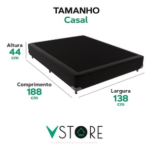 A tecnologia que a sua casa merece está na V-Store!A Base Box Bravus da V-Store une funcionalidade e elegância, sendo a escolha perfeita para quem busca praticidade e durabilidade. Feita com madeira reflorestada, ela oferece excelente sustentação para o seu colchão, enquanto seu revestimento em tecido sintético garante resistência e facilidade de manutenção. Seu design compacto e sofisticado complementa a decoração do quarto com estilo.Com capacidade para 150 kg por pessoa e Selo Ecologicamente Correto, a Base Box Bravus oferece resistência, sustentabilidade e versatilidade para o seu ambiente.Adquira já a sua Base Box Bravus V-Store e transforme seu dormitório com qualidade e estilo!CARACTERÍSTICAS DO PRODUTOMarca: V-StoreModelo: BravusCor do Box: PretoTamanho: CasalDimensões: 138x44x188 (Largura x Altura x Comprimento)Estrutura: MadeiraPeso máximo recomendado: 150 kg (Por Pessoa)Altura do Box: 26 cmAltura dos Pés: 6 cmAltura total: 44 cmGarantia: 12 Meses (Estrutura) / 3 meses (Tecido)Selo Ecologicamente CorretoAtenção:- Antes de finalizar sua compra, recomendamos que verifique se as dimensões do produto são adequadas para serem transportadas pelos elevadores, portas, escadas e corredores de sua residência. Ressaltamos que não nos responsabilizamos pelo transporte do produto por meios específicos, como escadas, guinchos ou içamentos.- É possível que hajam leves variações de cor de acordo com o dispositivo que está sendo utilizado como smartphones, computadores, monitores e outros.