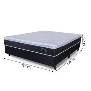 MODELO: Cama Box Casal Queen Colchão Com Molas Ensacadas City Pillow Top 158x198x61cm Preto/Branco Hellen
