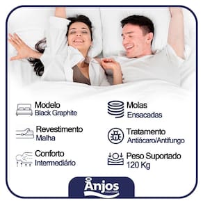 Cama Box Casal Sintético + Colchão Anjos Black Graphite Molas Ensacadas 138x188x64cm Branco - Cama Box Casal com Colchão de Molas Ensacadas