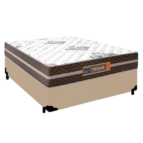 Cama Box Casal Sintético + Colchão Molas Ensacadas Texas Prime Colchões 138cm Bege - Suporta Até 120 Kg Por Pessoa - Marrom | Branco