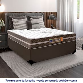 A Cama Box Casal Sintético + Colchão Molas Ensacadas Texas 138x188x64cmÉ uma combinação que oferece uma solução completa, agilidade e praticidade na aquisição da sua cama. O Colchão Casal Texas Molas Ensacadas foi criado pensando em você. Possui molas ensacadas em sua composição, o que proporciona um conforto único. A capacidade de suporte é de até 120kg por pessoa, garantindo conforto durante o sono, além de promover um melhor apoio e qualidade de vida.