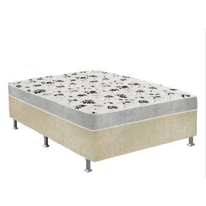 Cama Box Casal Suede Bege + Colchão Casal Suede Cinza Orto Molas Bonnel 138x188x55