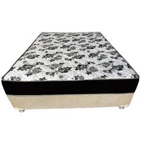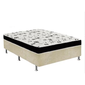 Cama Box Casal Suede Bege + Colchão Casal Suede Preto Orto Molas Ensacada 138x188x55