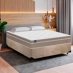 Cama Box Casal Suede + Colchão Lis Molas Ensacadas Plumatex 138x188x64cm