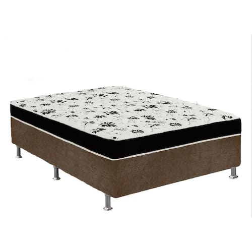 Cama Box Casal Suede Marrom + Colchão Casal Suede Preto Espuma 138x188x55