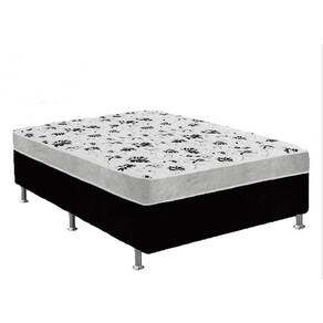 Cama Box Casal Suede Preto + Colchão Casal Suede Cinza Orto Molas Bonnel 138x188x55