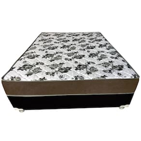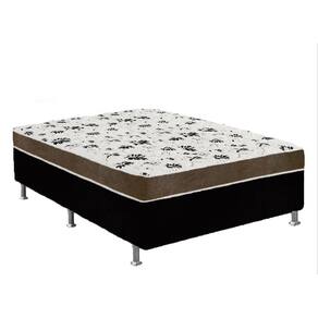 Cama Box Casal Suede Preto + Colchão Casal Suede Marrom Orto Molas Bonnel 138x188x55