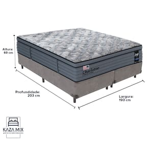 Bem-vindo(a) ao nosso catálogo! Apresentamos a você uma descrição completa sobre esse produto: A marca SealyEntre as personalidades que usam e usaram os colchões da marca Sealy estão a cantora Adele, Rainha Elizabeth II, a apresentadora Ellen DeGeneres e o jogador de basquete LeBron James. Atendendo também os hotéis da Disney, Copacabana Palace, Hard Rock Hotels e outros. Referência na fabricação de colchões de alta qualidade, a empresa foi fundada em 1881. Investindo em tecnologia de ponta e materiais premium para produzir produtos duráveis e confortáveis, é reconhecida por diversos consumidores famosos em todo o mundo. Modelo: CharlotteNível de Conforto: MacioSuporte de peso: 240 quilos (120kg por pessoa)Molas: Molas Ensacadas IndividualmentePillow: Pillow CloudEspuma: D33 e D28Altura: 34cmTecido: Tampo em Malha MarganTransforme suas noites de sono com Colchão Charlotte Sealy de 34cm, onde suavidade e suporte se encontram em perfeita harmonia. Com sua estrutura de Molas Ensacadas, ele se adapta às curvas do seu corpo, proporcionando um conforto macio e um suporte firme exatamente onde você precisa. Suportando até 240 kg, é durável e ideal para diferentes tipos de usuários. A tecnologia Posturepedic garante suporte extra nas áreas de maior pressão, ajudando a manter uma postura correta e promovendo um descanso profundo. As molas ensacadas individualmente trabalham de forma independente, minimizando a transferência de movimento e permitindo um sono tranquilo, mesmo que seu parceiro se mova durante a noite. O colchão é equipado com uma camada Pillow Cloud que intensifica a suavidade, e um tampo em malha Margan que regula a umidade e dissipa o calor, mantendo o colchão sempre fresco e confortável. A lateral em Jacquard Plano adiciona durabilidade e um toque de elegância ao colchão. Com fibras siliconadas e espumas variadas que aliviam a pressão e mantêm o suporte firme, o Colchão Charlotte Sealy é perfeito para uma noite de sono reparadora. Suas bordas firmes evitam o afundamento e ampliam a área útil do colchão, oferecendo mais espaço para relaxar. O Colchão Charlotte Sealy combina tecnologia avançada e um design inteligente, proporcionando uma experiência luxuosa de descanso. Transforme suas noites com um sono revitalizante e adquira o seu hoje mesmo! Além de tudo, esse produto acompanha a Cama Box da Kaza Mix e assim se torna um conjunto perfeito para o seu quarto! Marca: Kaza MixCor do Box: CinzaTamanho: KingMaterial dos pés: MadeiraEstrutura: MadeiraPeso máximo recomendado: Até 150kg de cada ladoLargura: 193cmComprimento: 203cmAltura dos pés: 12cmAltura total: 42cmGarantia: 03 mesesSelo Ecologicamente CorretoAtenção: - Antes de finalizar sua compra, recomendamos que verifique se as dimensões do produto são adequadas para serem transportadas pelos elevadores, portas, escadas e corredores de sua residência. Ressaltamos que não nos responsabilizamos pelo transporte do produto por meios específicos, como escadas, guinchos ou içamentos. - É possível que hajam leves variações de cor de acordo com o dispositivo que está sendo utilizado como smartphones, computadores, monitores e outros.