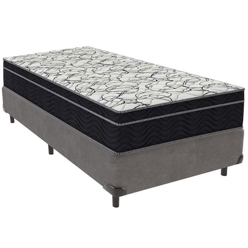 Cama Box Cinza E Colchão Airtech 150 Espuma D45 Solteiro Ortobom