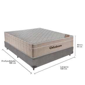 O conforto que sua casa precisa e a qualidade que você merece está na Kazamix!Durma com a Qualidade e Conforto que Você Merece!O Colchão Airtech Molas ensacadas Ortobom é a escolha perfeita para quem busca conforto e suporte. Equipado com um sistema de molas ensacadas, ele oferece suporte individualizado, garantindo o alinhamento correto da coluna e reduzindo os impactos dos movimentos durante o sono. O Euro Pillow proporciona uma camada extra de maciez, garantindo um sono ainda mais revigorante.Seu revestimento em tecido de malha e matelassê, junto com a lateral em suede, proporcionam um visual sofisticado, elevando ainda mais a estética do seu dormitório e agregando elegância ao ambiente.Além disso, o colchão conta com proteção antiácaro e antialérgico, criando um ambiente de sono mais saudável e ideal para quem busca bem-estar. Produzido com materiais de alta qualidade e a confiabilidade da Ortobom, líder em tecnologia e durabilidade, ele é feito para durar, oferecendo anos de conforto e suporte.Modelo: Airtech Molas ensacadasMarca: OrtobomTamanho: CasalDimensões: 138x188X25 (Largura x Comprimento x Altura)Conforto: MacioSistema: Molas EnsacadasPillow: Euro PillowPeso Máximo recomendado: 120 kg (Por pessoa)Proteções: Antiácaro, antialérgico, antifungo, antimofoGarantia: 1 ano pelo FabricanteO conforto que sua casa precisa e a qualidade que você merece está na Kazamix!Eleve o conforto e a sofisticação do seu quarto com a Cama Box!Produzida em madeira de reflorestamento reforçada, a Cama Box combina qualidade, durabilidade e um design elegante, que confere leveza e modernidade ao seu dormitório. Sua estrutura robusta suporta até 150 kg por pessoa, garantindo a sustentação perfeita para o colchão e prolongando a vida útil do produto.Com uma altura ergonômica, ela oferece maior conforto ao deitar e levantar, enquanto o acabamento de alta qualidade se adapta a qualquer estilo de decoração, unindo praticidade e estilo.Não perca tempo! Adquira agora mesmo a sua Cama Box e transforme seu dormitório com conforto e elegância.Marca: KazaMixModelo: BoxCor do Box: CinzaTamanho: CasalDimensões: 138X188X35 (Largura x Comprimento x Altura) Estrutura: MadeiraPeso máximo recomendado: 150 kg (Por Pessoa)Altura do Box: 25 cm Altura dos Pés: 10 cm Altura total: 35 cm Garantia: 03 mesesSelo Ecologicamente CorretoAtenção: Antes de finalizar sua compra, certifique-se de que as dimensões do produto sejam adequadas para serem transportadas pelos elevadores, portas, escadas e corredores de sua residência. Ressaltamos que não nos responsabilizamos pelo transporte do produto por meios específicos, como escadas, guinchos ou içamentos.