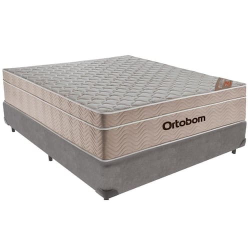 Cama Box Cinza E Colchão Airtech Molas Ensacadas Casal Ortobom