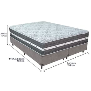 Cama Box Cinza e Colchão Black Graphite Molas Ensacadas Queen 158x198X27 Anjos