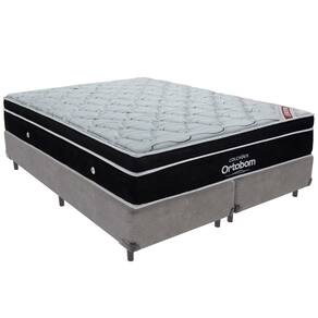 Cama Box Cinza e Colchão Elegant Molas Ensacadas Queen Ortobom