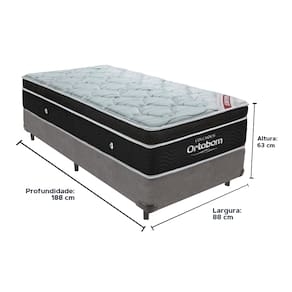 O conforto que sua casa precisa e a qualidade que você merece está na Kazamix!Desfrute do máximo conforto com o Colchão Elegant Ortobom! Sua estrutura de molas ensacadas, combinada com espuma D26 de alta densidade, proporciona o suporte perfeito para uma noite de sono revigorante. O Pillow Euro oferece um toque adicional de suavidade, garantindo um descanso ainda mais relaxante.Com o sistema No Turn, a manutenção se torna super simples, pois não é necessário virar o colchão. A fibra de bambu, que possui um toque macio e aconchegante, também contribui para um ambiente mais sustentável e confortável.Experimente o Colchão Elegant Ortobom e descubra o conforto, a qualidade e a inovação que você merece. Invista em noites de sono incríveis!Modelo: ElegantMarca: OrtobomTamanho: SolteiroDimensões: 88x188X28 (Largura x Comprimento x Altura)Conforto: FirmeSistema: Molas EnsacadasPillow: Euro PillowPeso Máximo recomendado: 150 kg (Por pessoa)Proteções: Antiácaro, antialérgico, antifungo, antimofoGarantia: 1 ano pelo FabricanteO conforto que sua casa precisa e a qualidade que você merece está na Kazamix!Eleve o conforto e a sofisticação do seu quarto com a Cama Box!Produzida em madeira de reflorestamento reforçada, a Cama Box combina qualidade, durabilidade e um design elegante, que confere leveza e modernidade ao seu dormitório. Sua estrutura robusta suporta até 150 kg por pessoa, garantindo a sustentação perfeita para o colchão e prolongando a vida útil do produto.Com uma altura ergonômica, ela oferece maior conforto ao deitar e levantar, enquanto o acabamento de alta qualidade se adapta a qualquer estilo de decoração, unindo praticidade e estilo.Não perca tempo! Adquira agora mesmo a sua Cama Box e transforme seu dormitório com conforto e elegância.Marca: KazaMixModelo: BoxCor do Box: CinzaTamanho: SolteiroDimensões: 88X188X35 (Largura x Comprimento x Altura) Estrutura: MadeiraPeso máximo recomendado: 150 kg (Por Pessoa)Altura do Box: 25 cm Altura dos Pés: 10 cm Altura total: 35 cm Garantia: 03 mesesSelo Ecologicamente CorretoAtenção: Antes de finalizar sua compra, certifique-se de que as dimensões do produto sejam adequadas para serem transportadas pelos elevadores, portas, escadas e corredores de sua residência. Ressaltamos que não nos responsabilizamos pelo transporte do produto por meios específicos, como escadas, guinchos ou içamentos.