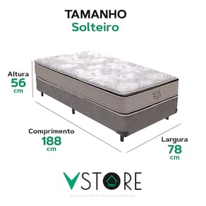 A tecnologia que a sua casa merece está na V-Store! O Conjunto Colchão Four Seasons e Base Box Bravus oferece o equilíbrio perfeito entre conforto e funcionalidade. O colchão, com molas ensacadas, pillow top e EPS, garante excelente suporte e conforto térmico, ideal para casais. Já a base, feita de madeira reflorestada e revestida em tecido sintético, oferece durabilidade e praticidade, com amplo espaço para armazenamento.Característica Do Colchão: Modelo: Four SeasonMarca: V-StoreTamanho: SolteiroDimensões: 78x30x188 (Largura x Altura x Comprimento)Conforto: MédioSistema: Molas EnsacadasPillow: Pillow TopPeso Máximo recomendado: 150 kg (Por pessoa)Proteções: Antiácaro, antialérgico, antifungo, antimofoGarantia: 12 Meses (Espuma) / 10 anos ( Conjunto de Molas Ensacadas)Característica Da Base: Marca: V-StoreModelo: BravusCor do Box: CinzaTamanho: SolteiroDimensões: 78x44x188 (Largura x Altura x Comprimento)Estrutura: MadeiraPeso máximo recomendado: 150 kg (Por Pessoa)Altura do Box: 26 cmAltura dos Pés: 6 cmAltura total: 44 cmGarantia: 12 Meses (Estrutura) / 3 meses (Tecido)Selo Ecologicamente CorretoAtenção:- Antes de finalizar sua compra, recomendamos que verifique se as dimensões do produto são adequadas para serem transportadas pelos elevadores, portas, escadas e corredores de sua residência. Ressaltamos que não nos responsabilizamos pelo transporte do produto por meios específicos, como escadas, guinchos ou içamentos.- É possível que hajam leves variações de cor de acordo com o dispositivo que está sendo utilizado como smartphones, computadores, monitores e outros.